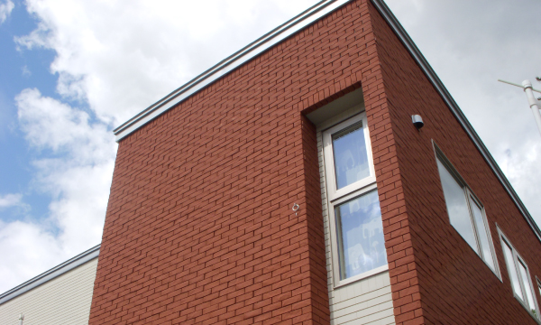 レンガとタイルの組み合わせが、モダンで柔らかな印象を表現した落ち着きのある外観。子どもの気配を感じながら夫婦の会話を楽しむ。家族ひとりひとりのくつろぎを大切にしながら、にぎやかさにも満たされる住まい「ココフィール」です。