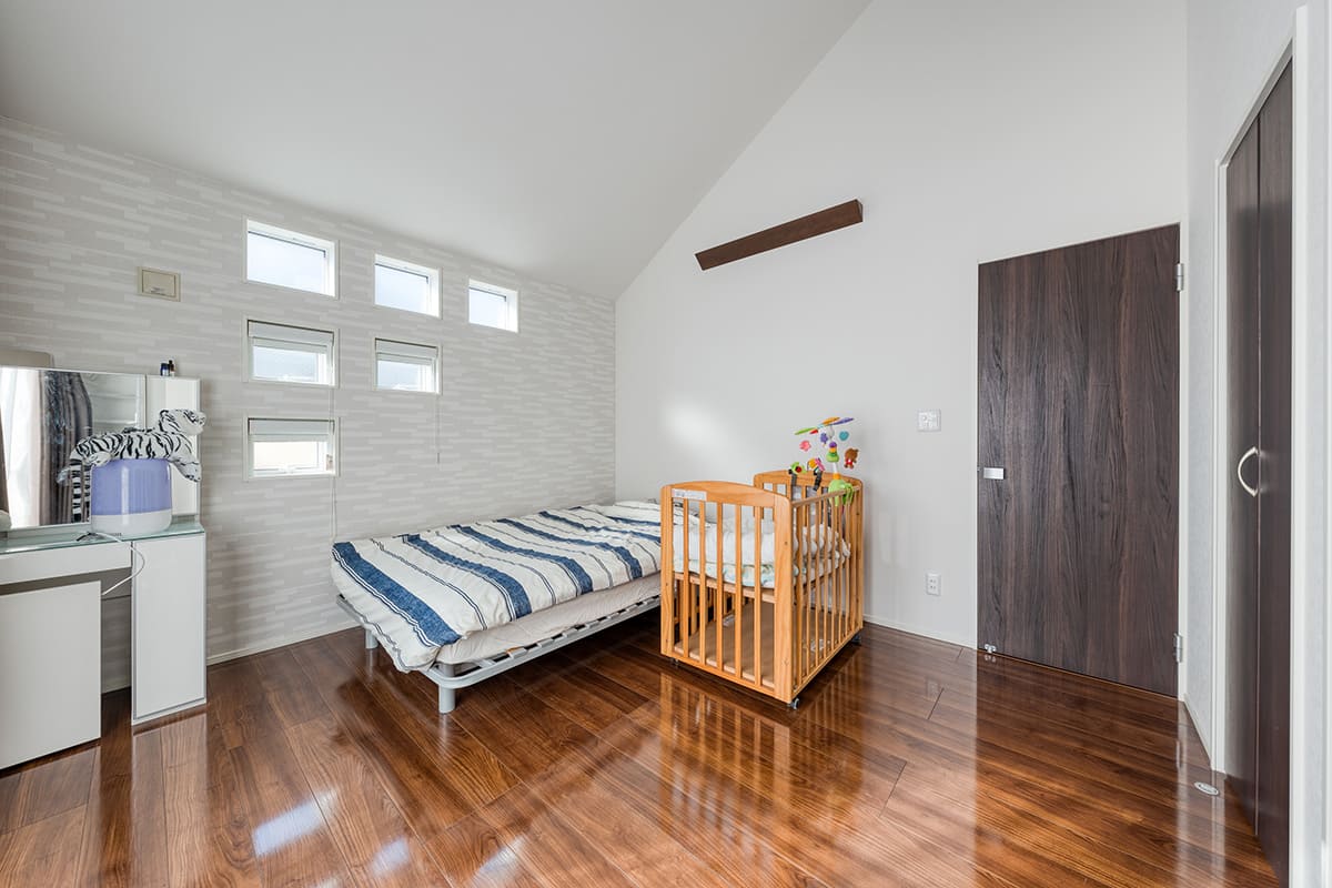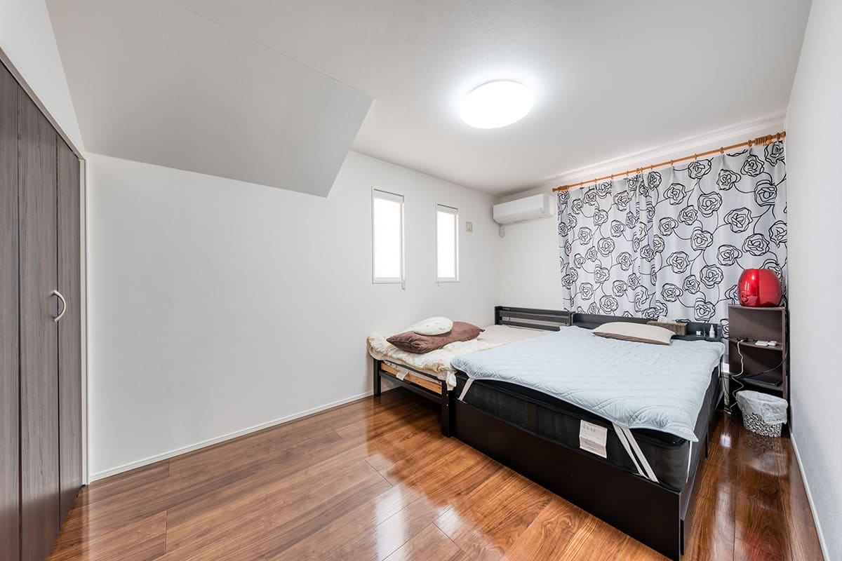 2面採光で明るさと共に風通しにも配慮した寝室を全部屋に採用。