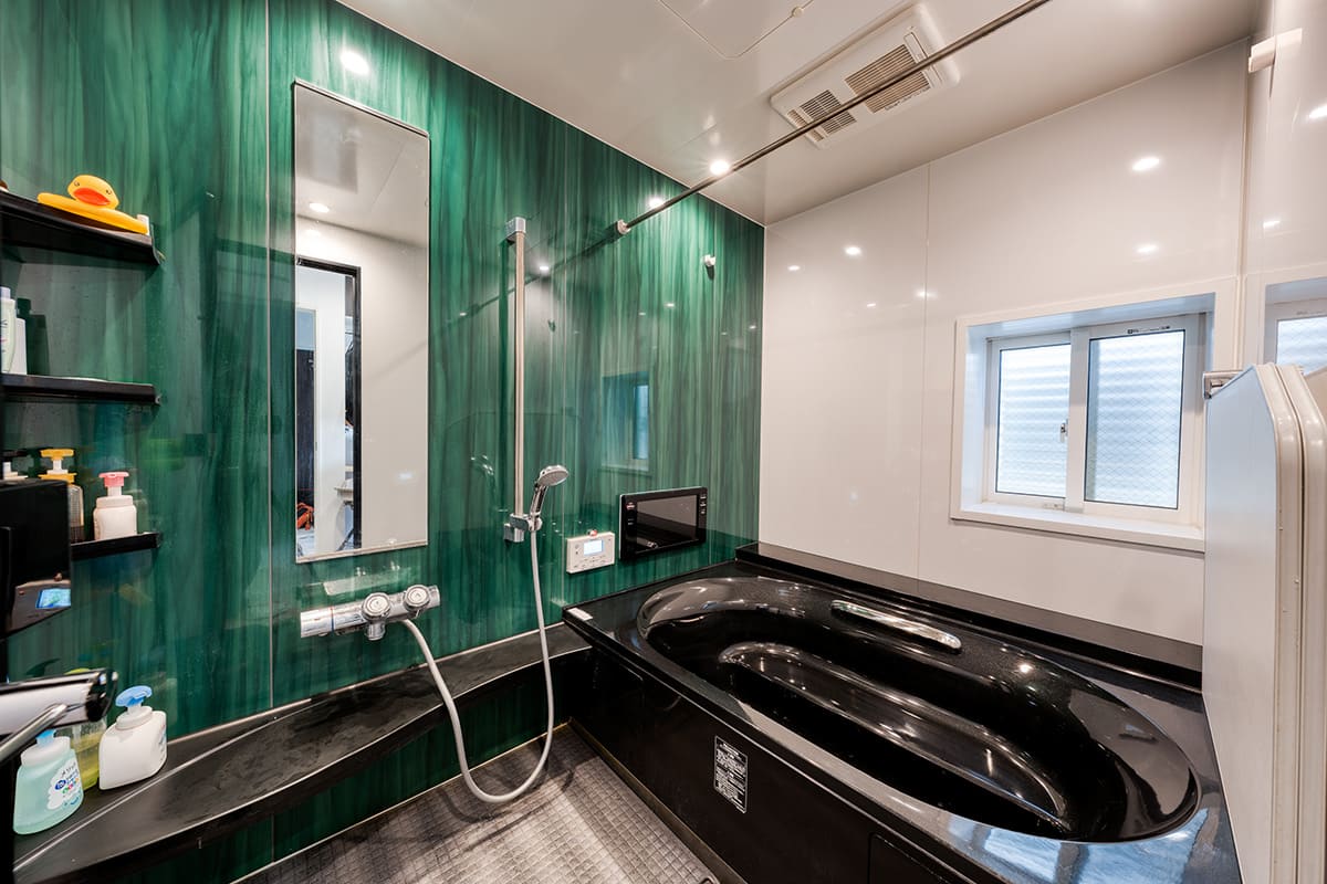 住んでいた賃貸物件の2倍の広さがある1.5坪のTV付き浴室がお子様との至福の時間。