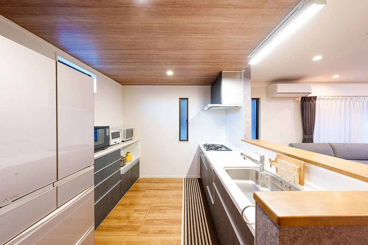 家電スペースも十分に計画された動きやすい広々としたキッチン空間。
