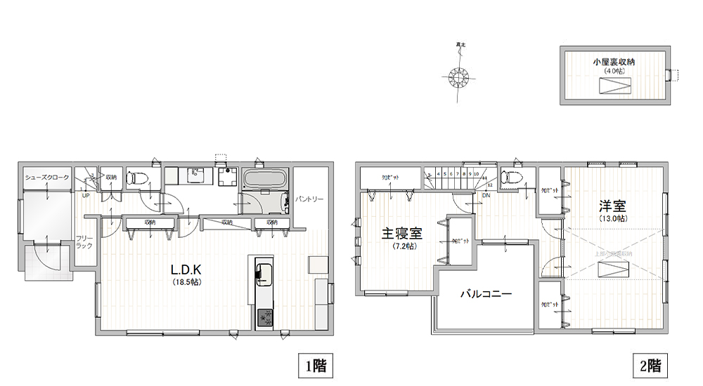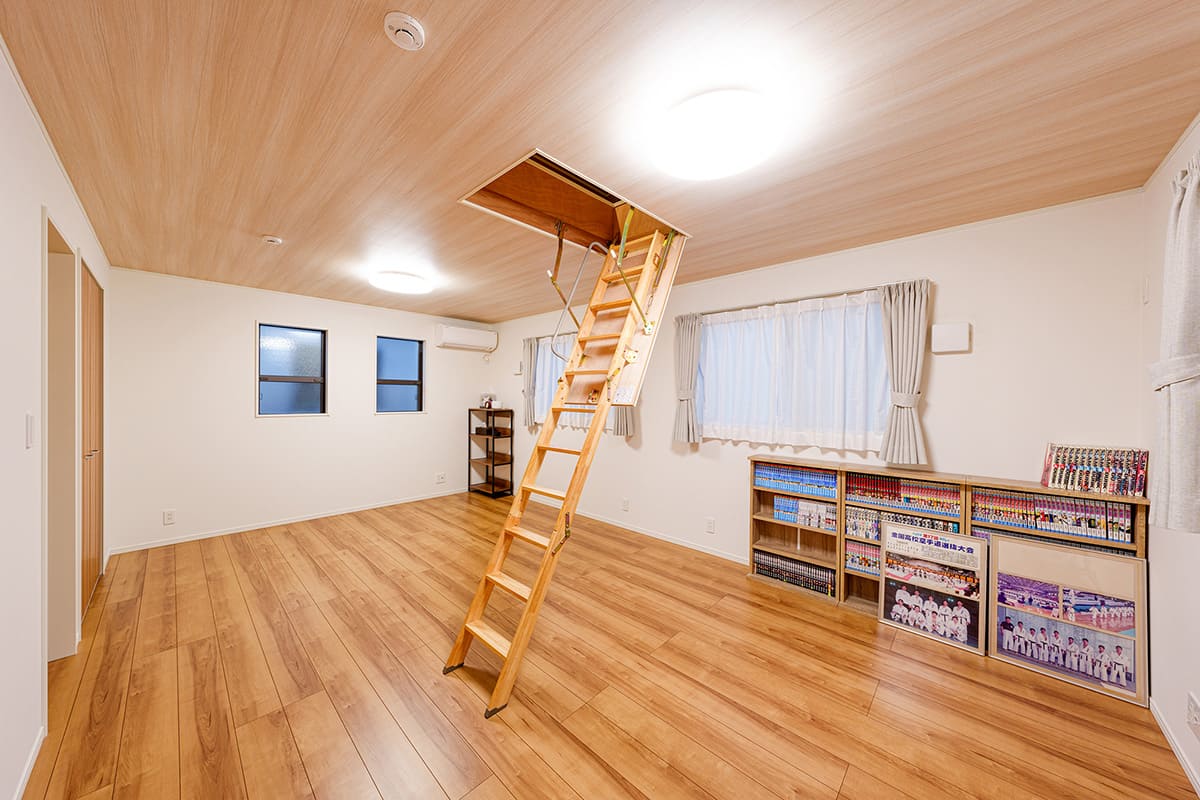 小屋裏収納を設置し、大容量の収納スペースを確保。