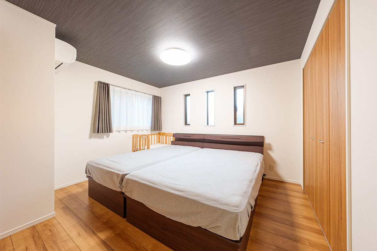 2面採光と大容量のクローゼットで明るくスッキリと快適な主寝室。