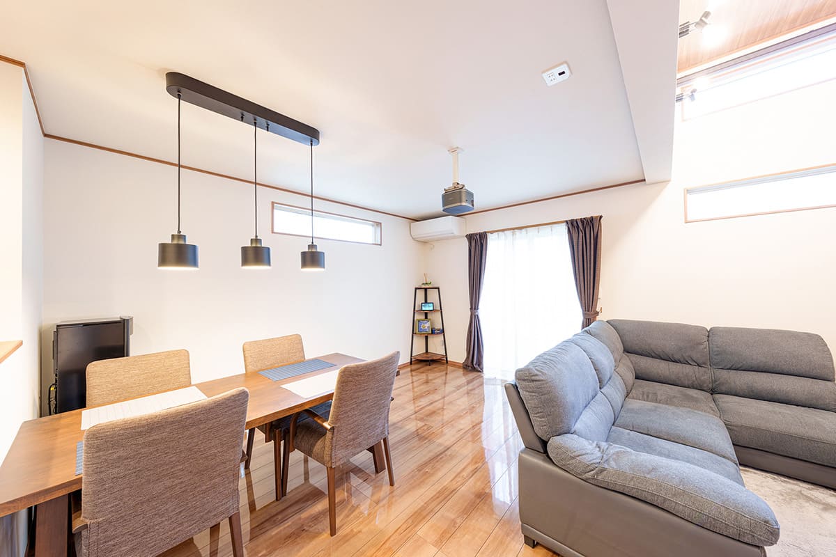 カウンターキッチン越しに調理中の奥様との会話も可能な6人掛けも設置可能なダイニング。