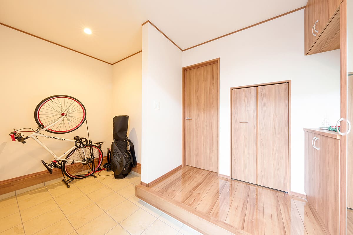 玄関横のシューズインクロークスペースをオープンなユーテリティスペースとして活用。