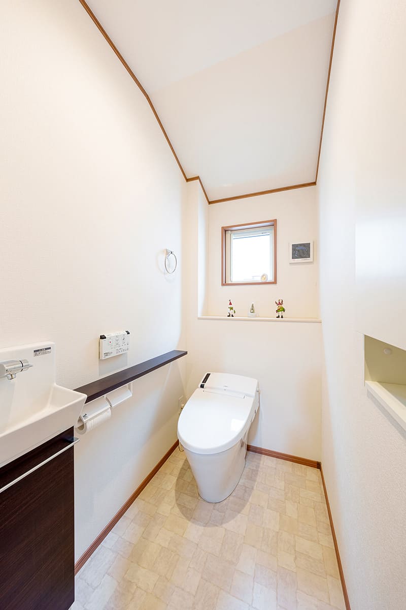 バリアフリー対応で、横幅を広く設けたトイレ。ご高齢のお母様も安心して利用可能。