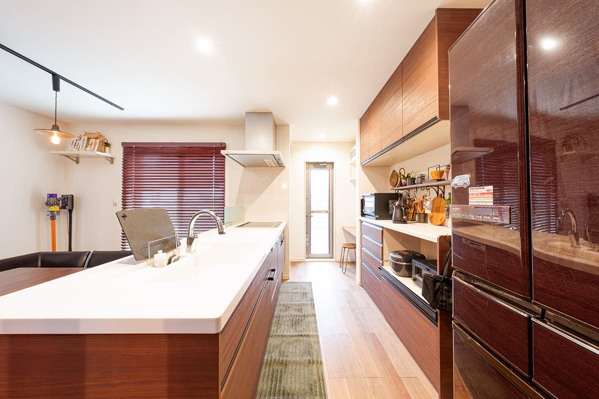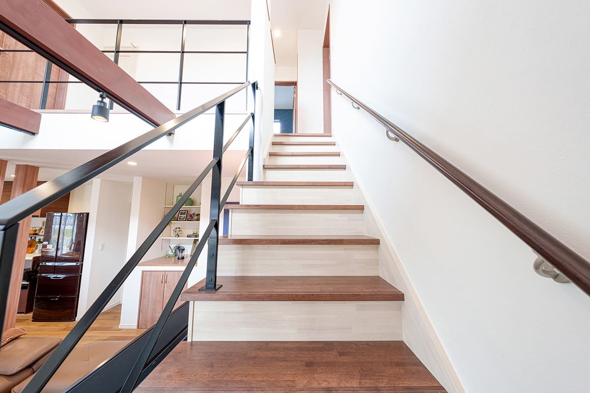 打ち合わせ時からこだわった吹き抜けのあるリビングやアイアン手摺付のリビングイン階段、オープンキッチンで広々としていて料理しやすいキッチンなど、担当者とのきめ細かいコミュニケーションの結果、希望予算内で納得のマイホームが完成しました。