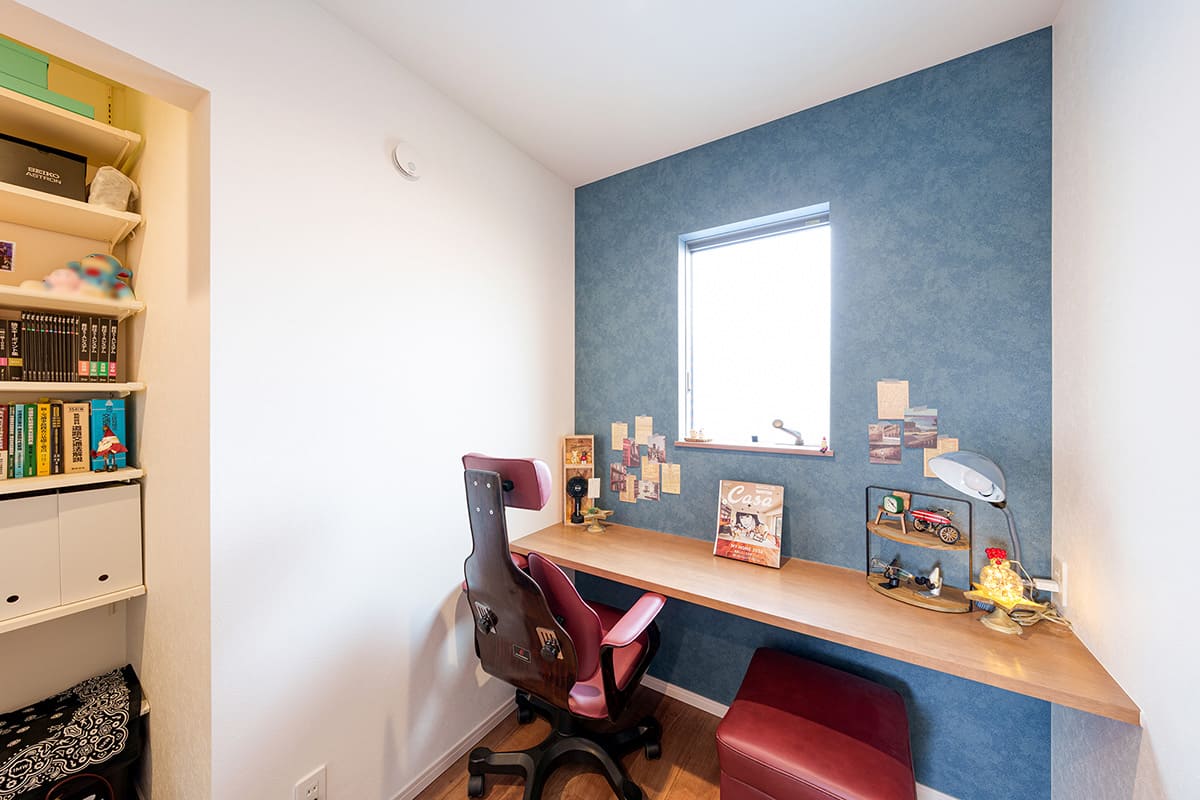 奥様の仕事部屋として機能性と快適性を重視した洋室。