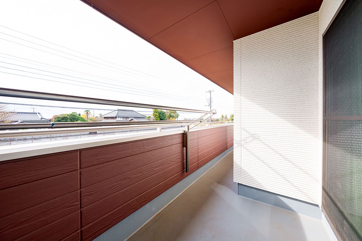 南西向きの開放感あふれる横幅10m超のバルコニー。バルコニー壁と天井の内張の配色にもこだわり、美しい統一感を演出。