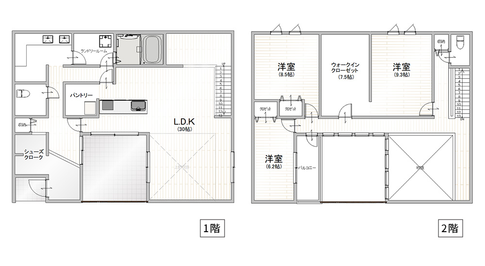 F様は広いリビングに憧れをもち、注文住宅を建てるため、土地探しを開始。やがて、条件に合った土地を購入することができました。施工を担当したのはタクトホーム。3社から相見積もりをとった結果、耐震性などの性能が高く、コストパフォーマンスに優れていることから決断したそうです。「細部に至るまで希望を叶えようとしてくれたのも決め手の一つですね」とF様。