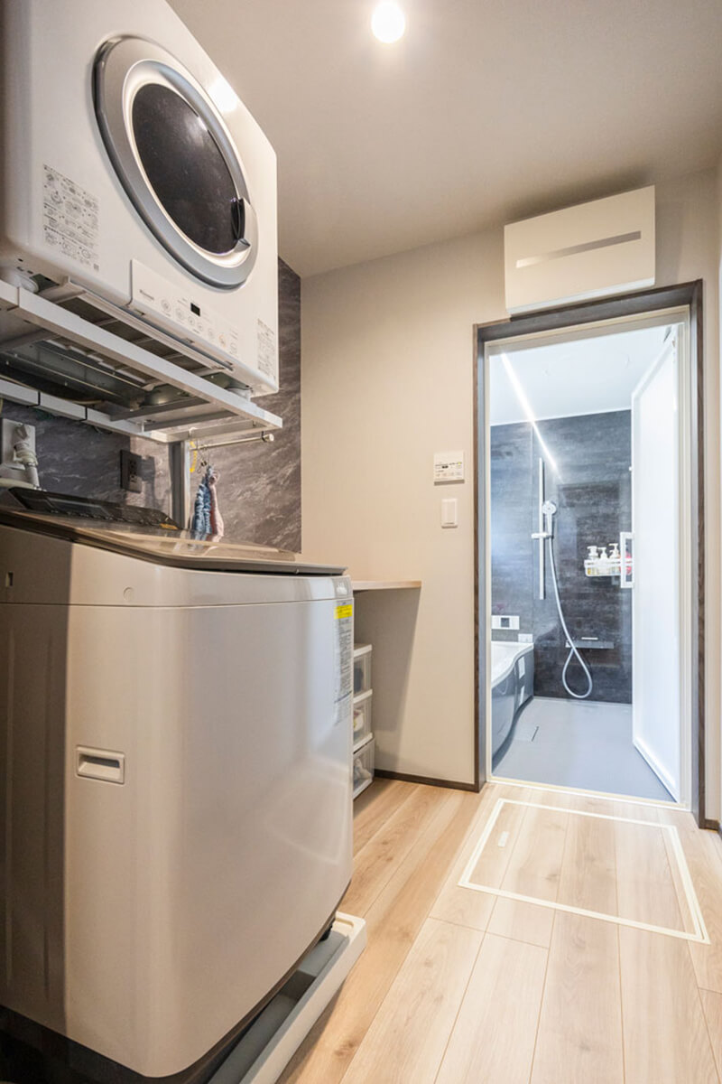 来客があっても気を使わなくて済むように、洗面所と脱衣所の間にも扉を設置。
