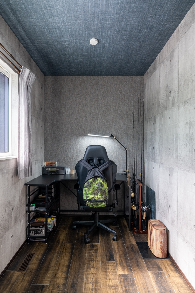 1階にはご主人様の念願だった個室を設けました。趣味の釣り道具を整理したり、出かける場所の情報を調べたりと、自分だけの時間を存分に楽しめる空間です。