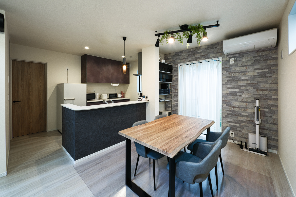 室内窓やクロスで空間にアクセントを加え、