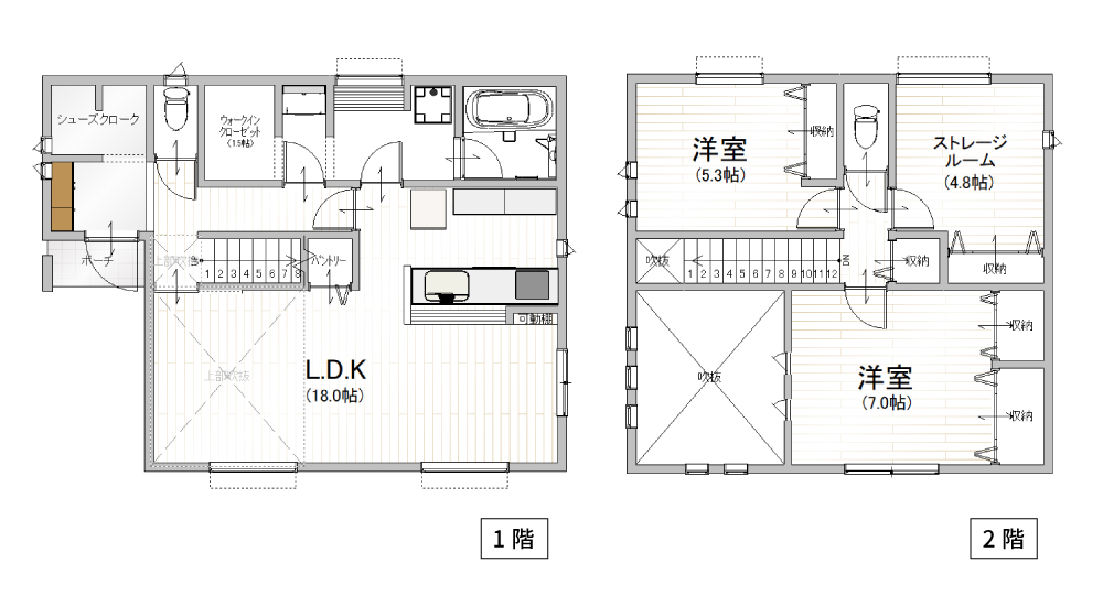 玄関の奥にはシューズクロークを確保しており、ベビーカーなどの大きな荷物も収納可能です。