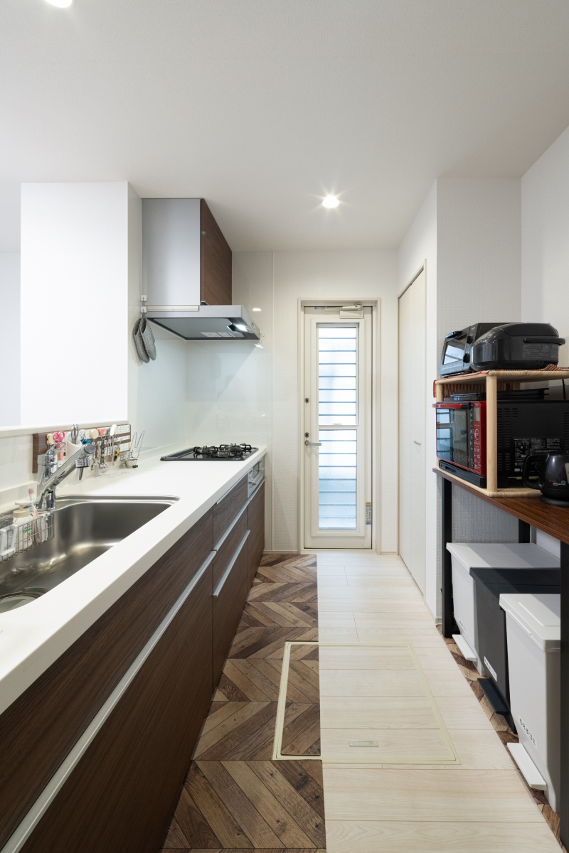 機能的でおしゃれな対面式キッチンが家族の会話をつなぐ空間に。