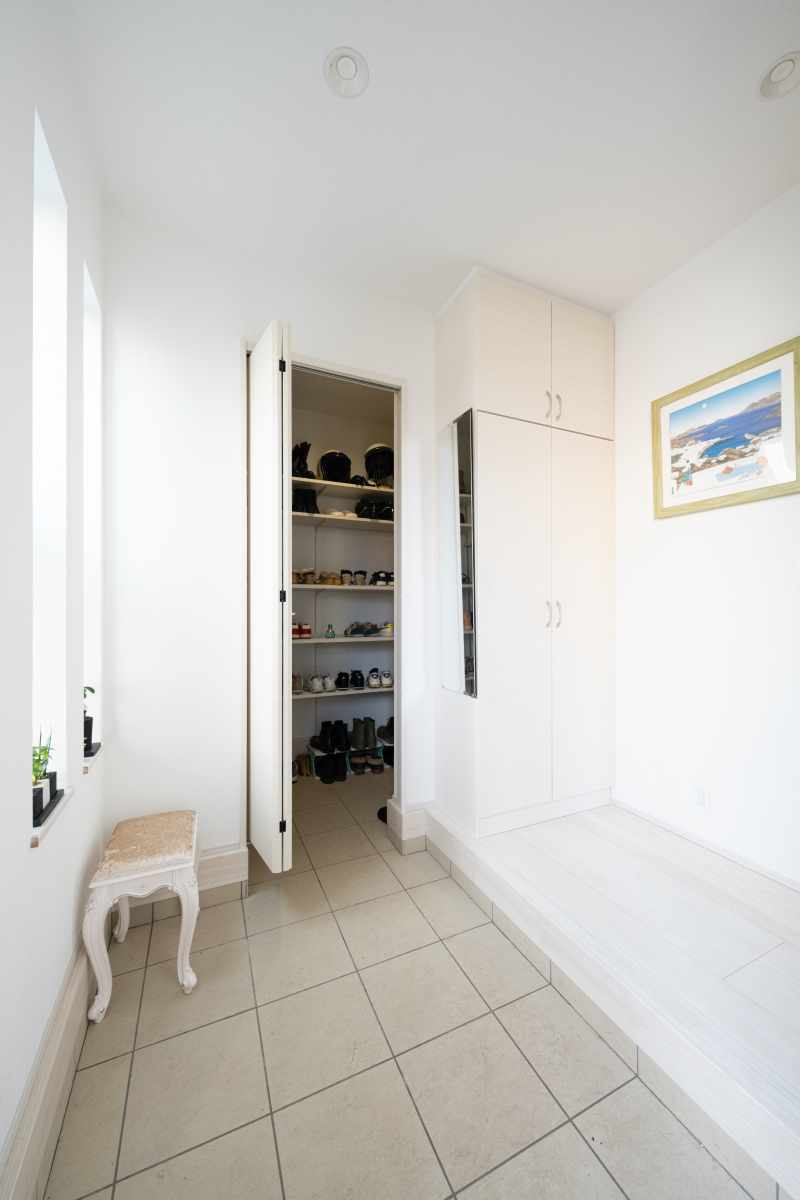 広々とした玄関に収納力抜群のシューズクロークを併設。暮らしやすさと美しさを兼ね備えた空間です。