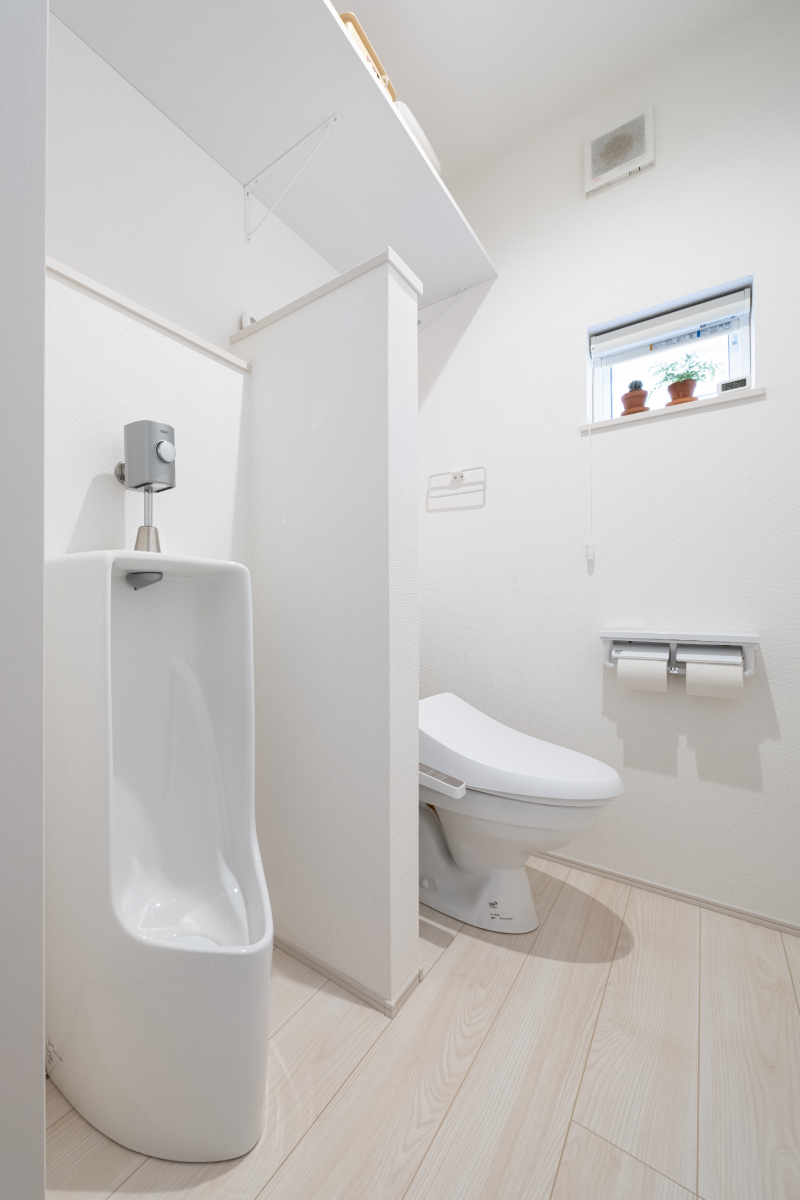 N様の強い希望で、小便器を取り付けた1階のトイレ。お客様にも珍しいと驚かれるそうです。
