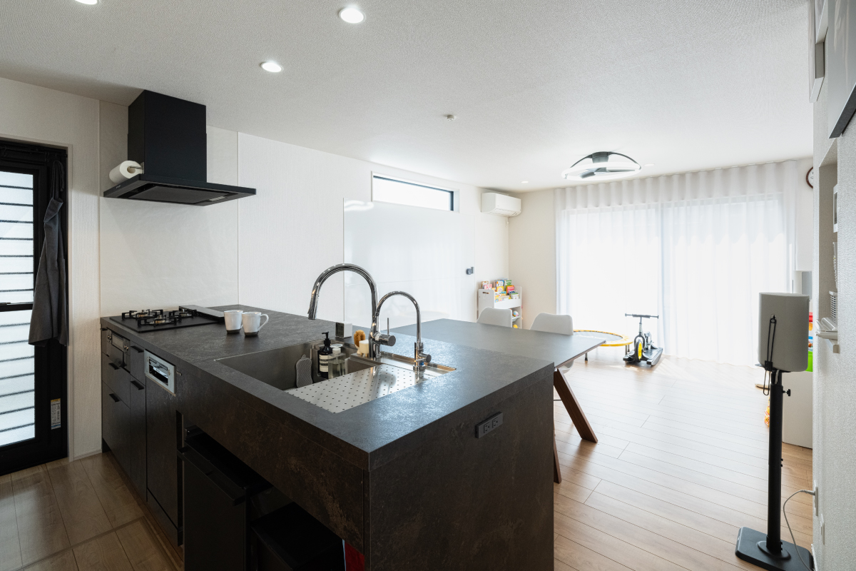 特に「もっと広いリビングがほしい」という思いが強く、完成したのは23帖の広々としたLDK。中でも最もこだわったのはシステムキッチンでした。「SNSで見つけたキッチンがとても素敵で、どうしてもこれを入れたいとお願いしました」と語るS様。