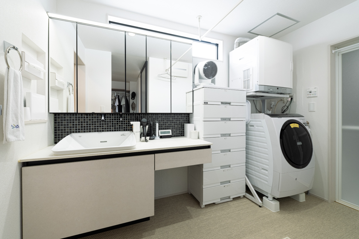 洗濯から乾燥、収納までを一か所でこなせる効率的な空間づくりが魅力です。