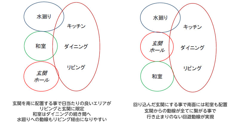 - 玄関の位置をどこにするか