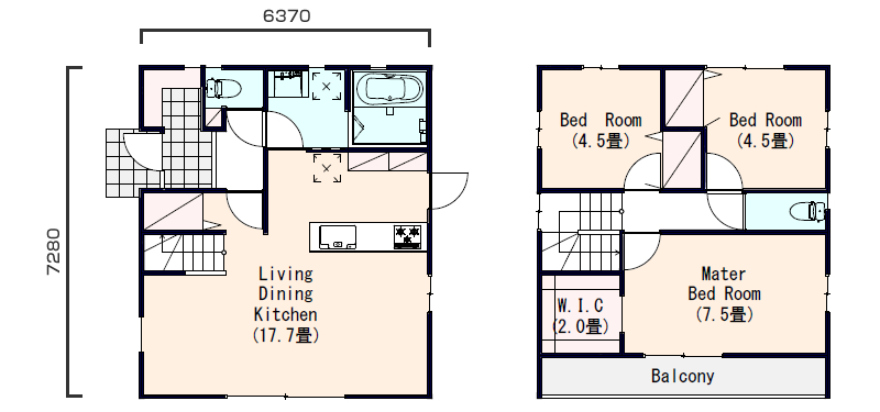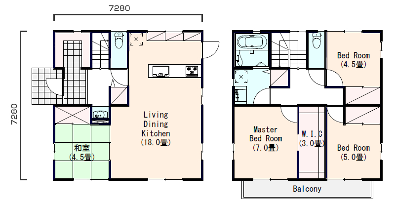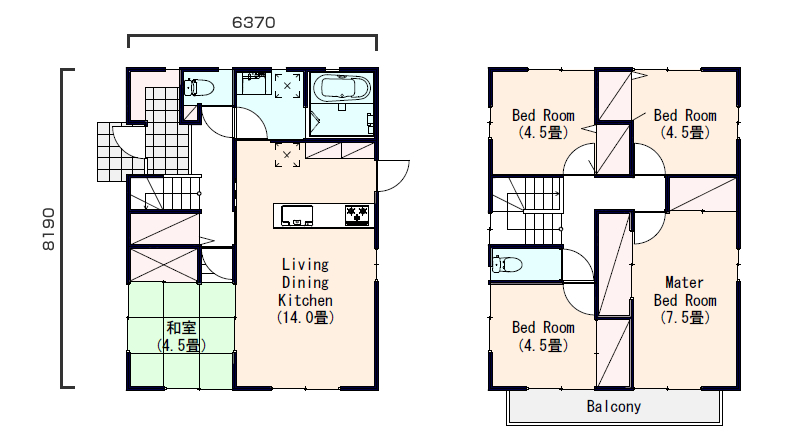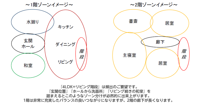- ・洗面所などを2階に配置する事でゆったりLDKの実現
