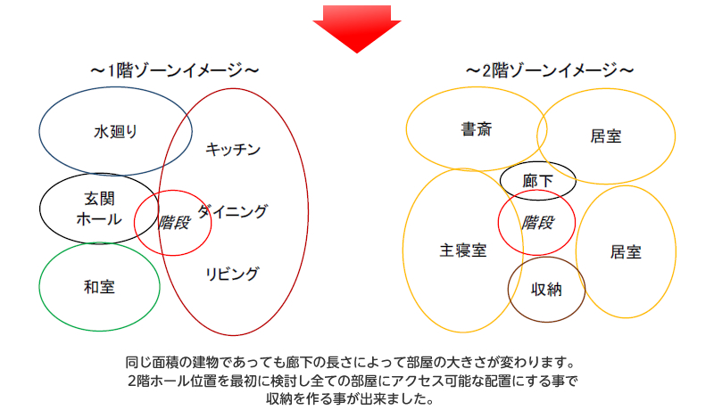 様々な要望が盛り込まれた間取りは複雑に見えますが、家の間取りはこの3つである程度の形が決まってきます。