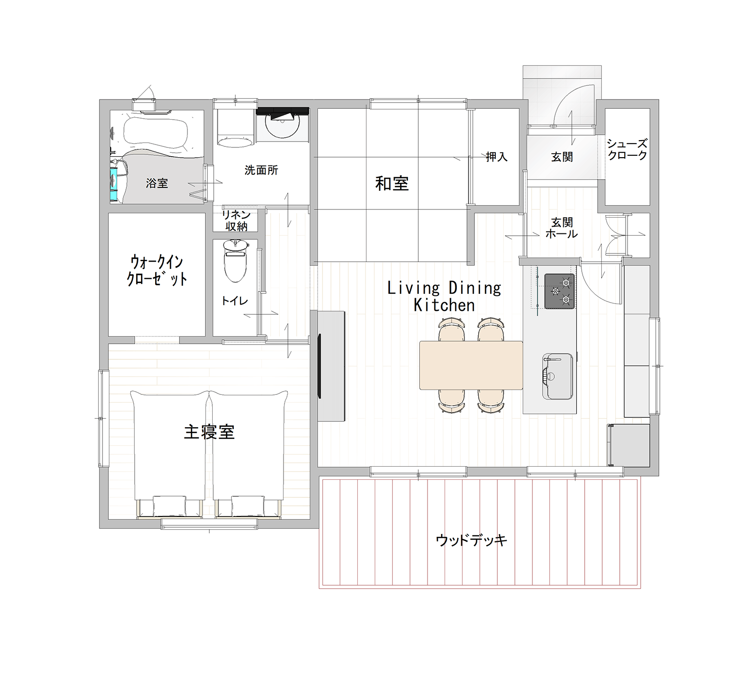 - 廊下、ホールを最小限に抑えたコスト重視のコンパクトプラン