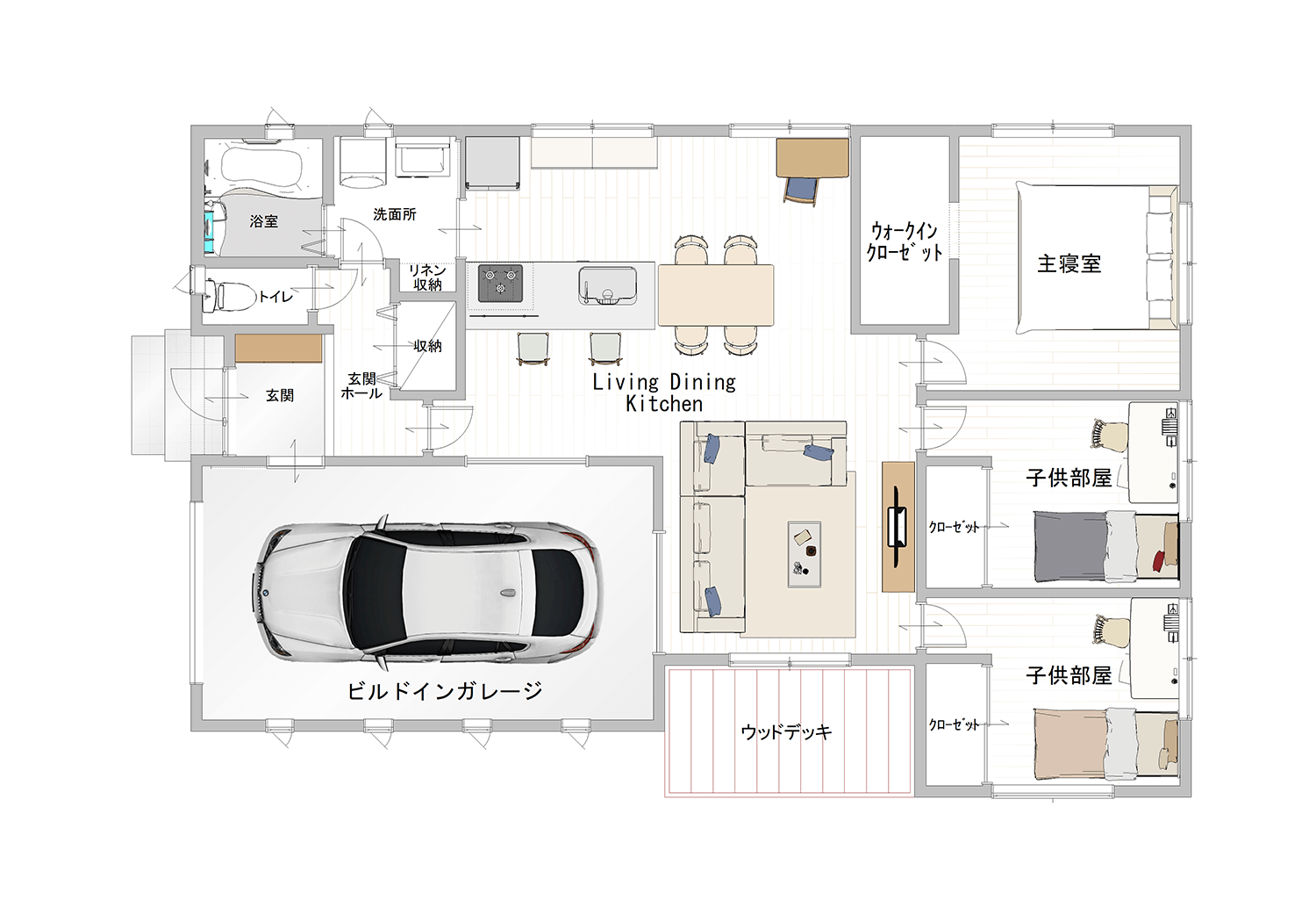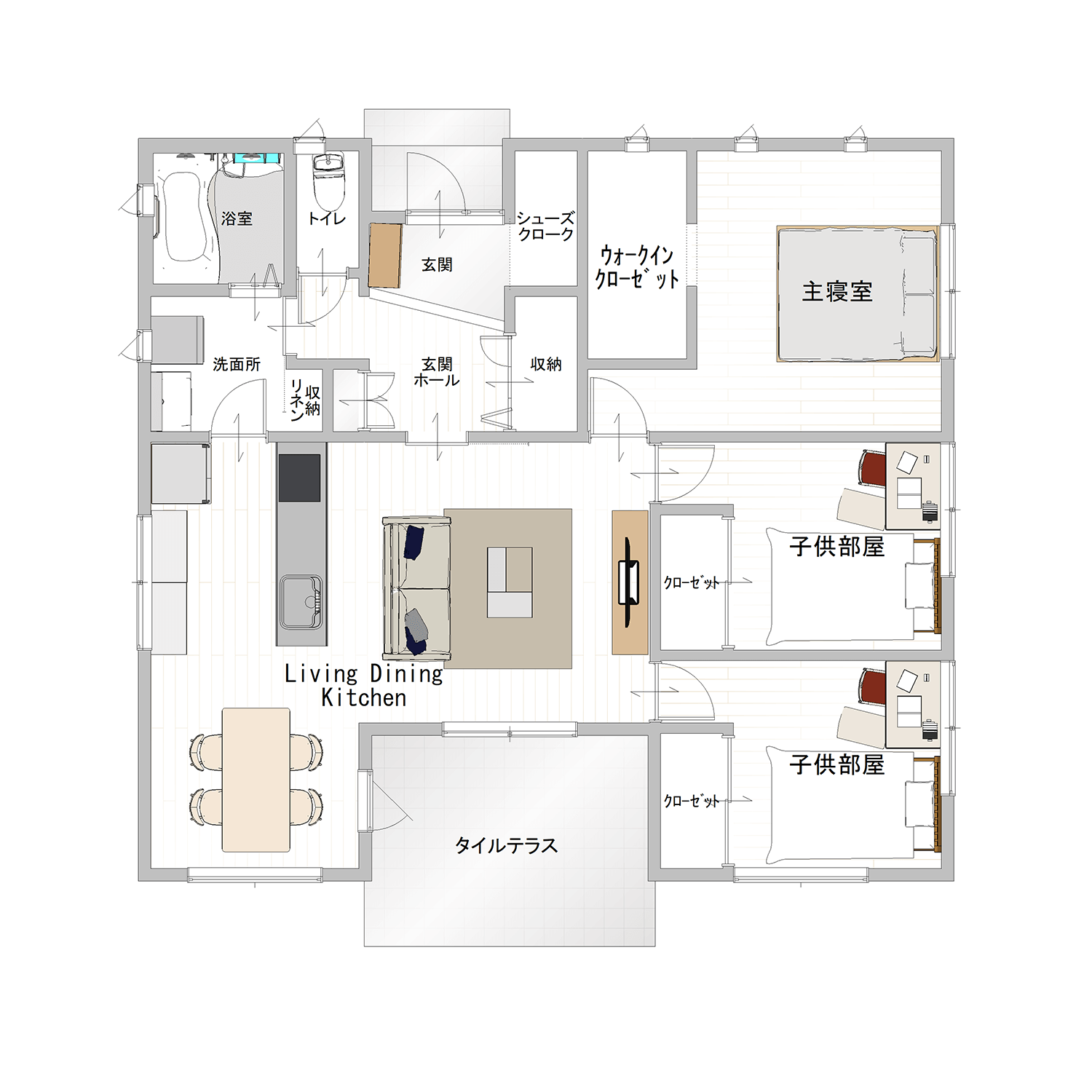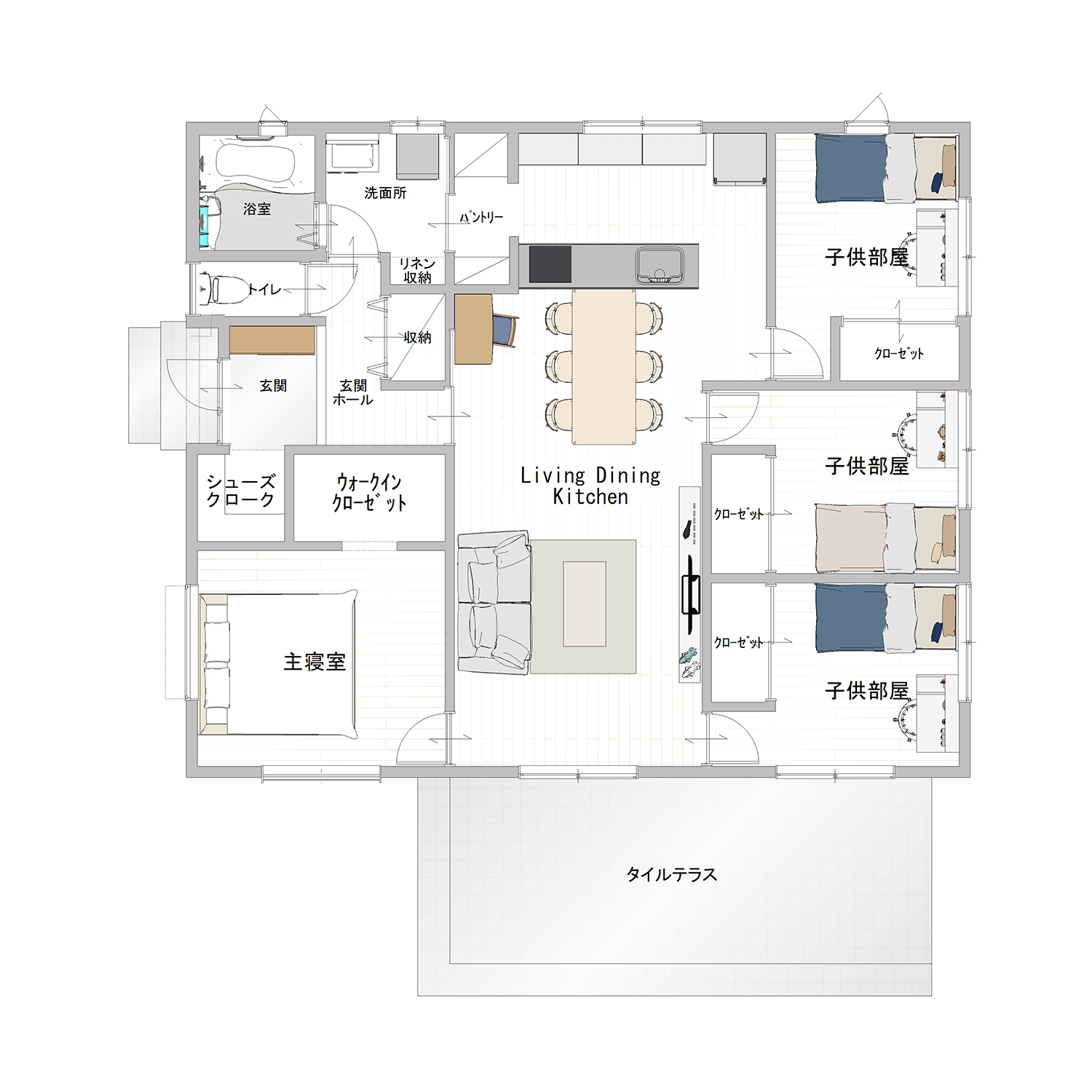 - リビングを通って子供部屋に入るコミュニケーションプラン