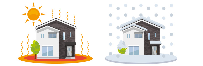 ②「断熱性」は、建物の壁や床、窓の断熱性などで評価されます。光熱費のかかる夏、冬に高断熱でエアコンの無駄を減らす事は月々の光熱費負担を軽くします。