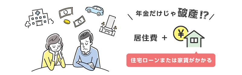 それもそのはずで、ここで示されている住居費は「設備修繕・維持」に関わる費用で、家賃や住宅ローンの返済額は含まれていません。当然のことながら、賃貸を借りている方や住宅ローンの返済が定年後も残っている場合は支出が増えることになります。