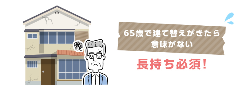 また、収入が少なくなる老後になって、家を建替えなければならなくなることは是が非でも避けためには、長く使える家、耐久性の高い家を建てることが重要です。