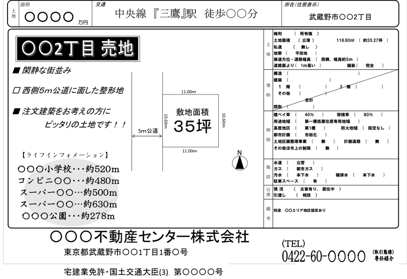 「道路付け」は物件概要のなかで、南側5m公道とか、西側4mアスファルト舗装というように表示されています。