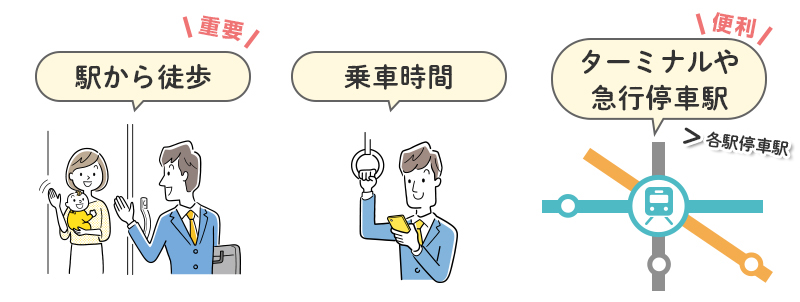 <1> 交通・・・都心部へのアクセスと共に駅までの距離