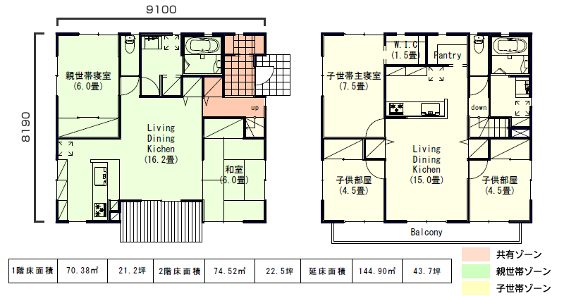 また下駄箱やキッチン廻りの収納、洗面所など共用での収納が単世帯よりも多く必要になります。反面、他の二世帯タイプと比較するとコンパクトにプランニングできますので、コスト面でのメリットは非常に高くなるでしょう。