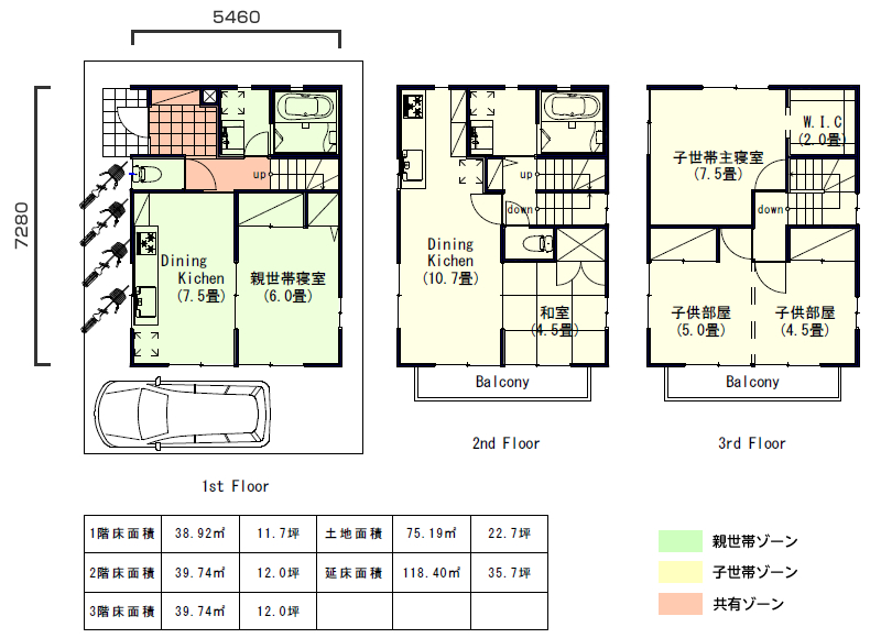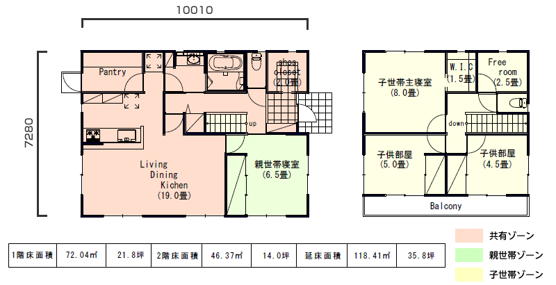 敷地面積23坪 一部共用同居型