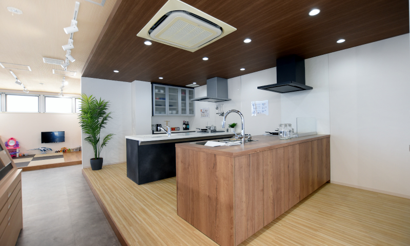 ショールームには各種設備・サンプルを取り揃えており弊社建物仕様をご覧頂く事が出来ます。打ち合わせルームにはキッズスペースもご用意しており、お子様連れのお客様のご来店もお待ちしております。