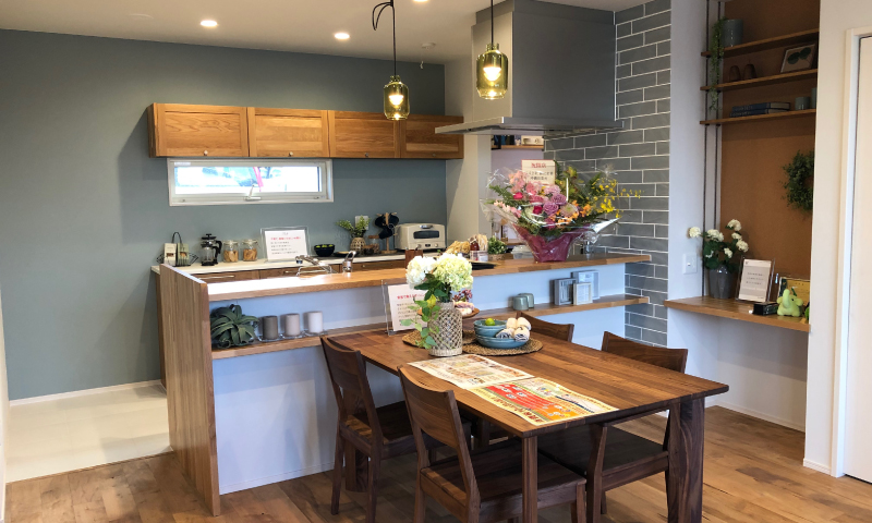 子育てママの「欲しい!」がギュッとつまった家「フェリーチェロ」、キッチンからは家じゅうが見渡せる、買い物から帰るとキッチンまでの動線がスムーズ、家中にたっぷりの収納、家事が楽な水回りのつながり、細やかな「欲しい!」がつまっています。