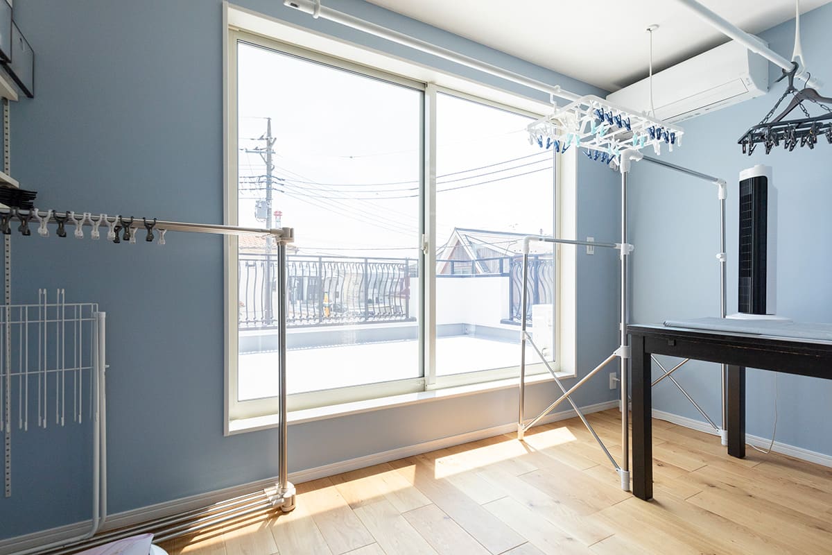 一番日当たりの良い2階南面に配置されたバルコニーに繋がるランドリースペース。