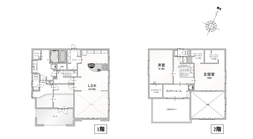 住宅展示場にあるような「贅沢に広い空間」にこだわり、まるで海外の邸宅かと思えるような美しいエントランスや開放感溢れる南東向きのバルコニーを採用。