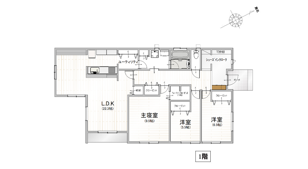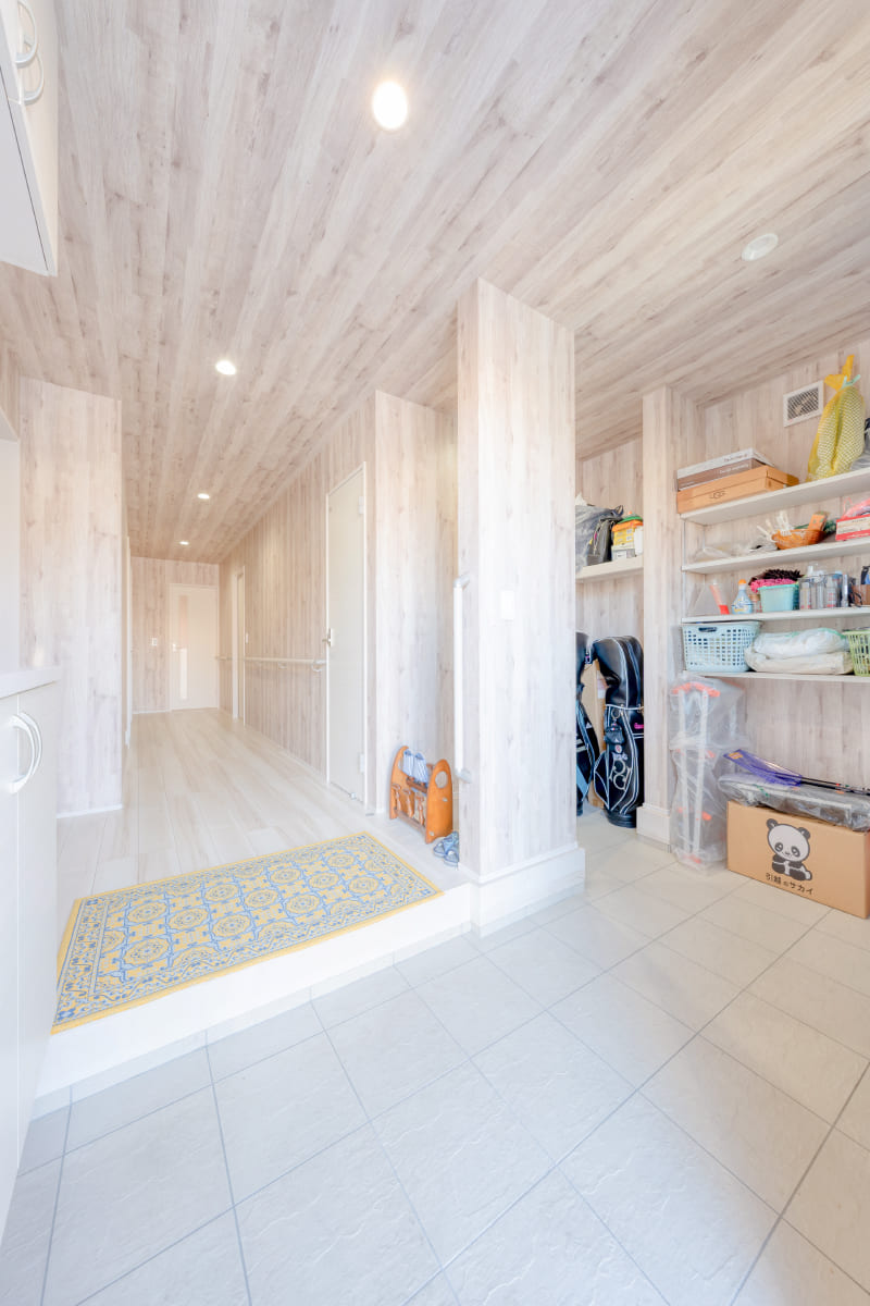大型のオープンシューズクロークを採用し、 明るくゆとりのある玄関。