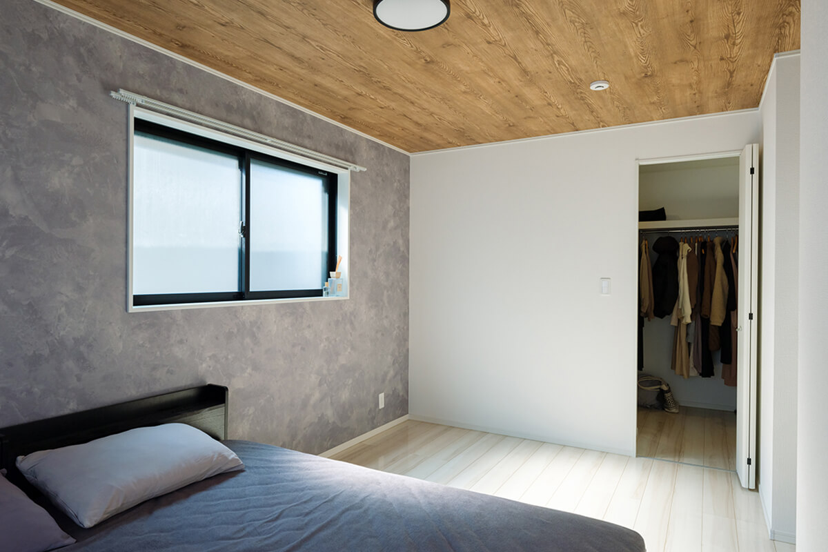 2階の主寝室には、3畳の大型ウォークインクローゼット。家族の衣類をまとめてしまうことができ、季節ごとの衣替えが不要な広さに大満足。