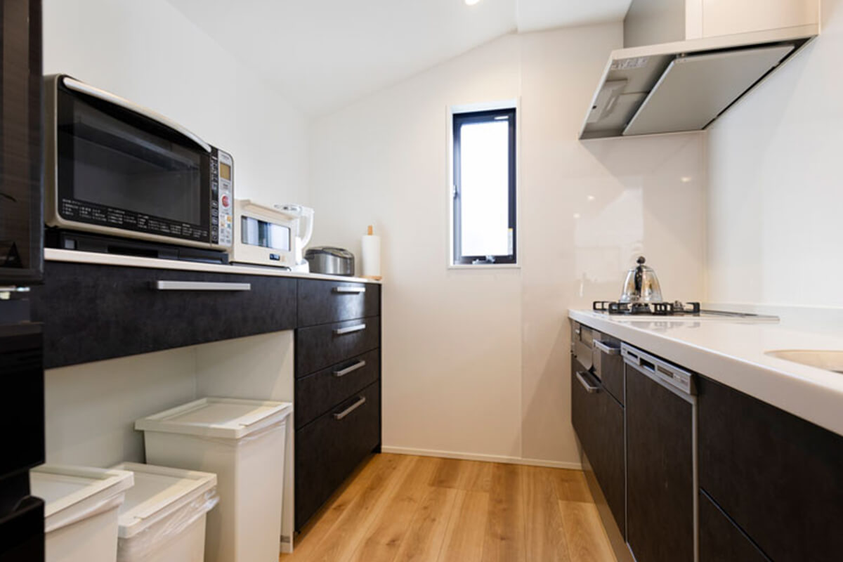 調理台の高さをMさまの身長に調整された対面キッチン。「料理がしやすくなりました」と好評。
