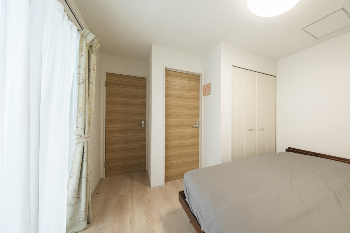 主寝室は1階に配置。中央のドアの先にはウォークインクローゼットを設置。