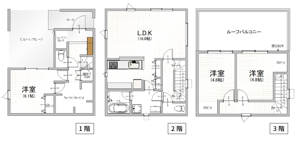 3階には将来の子ども部屋を配置。部屋の窓からはルーフバルコニーへ直接出ることができます。