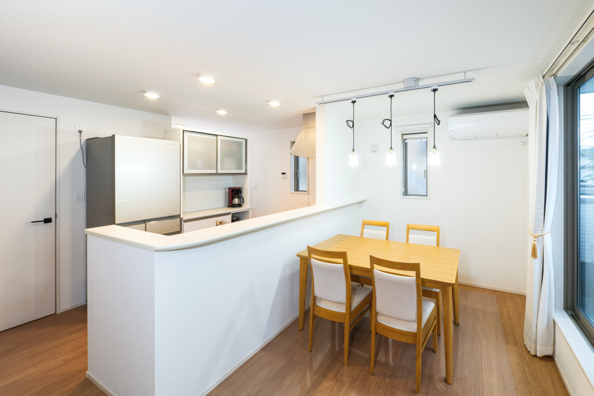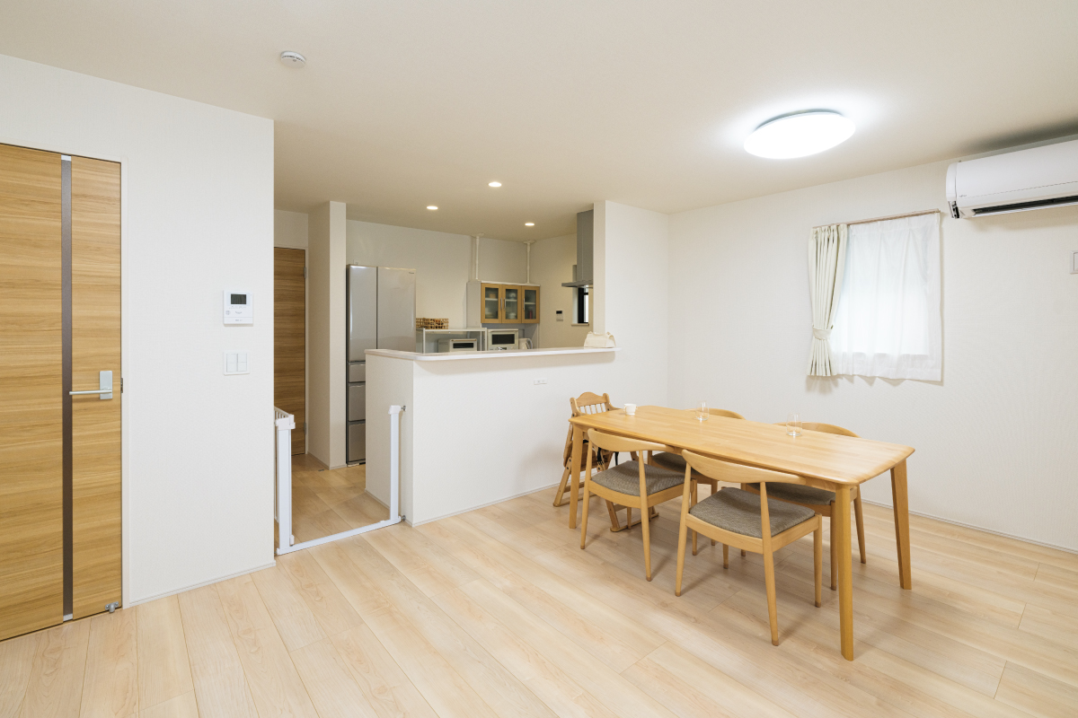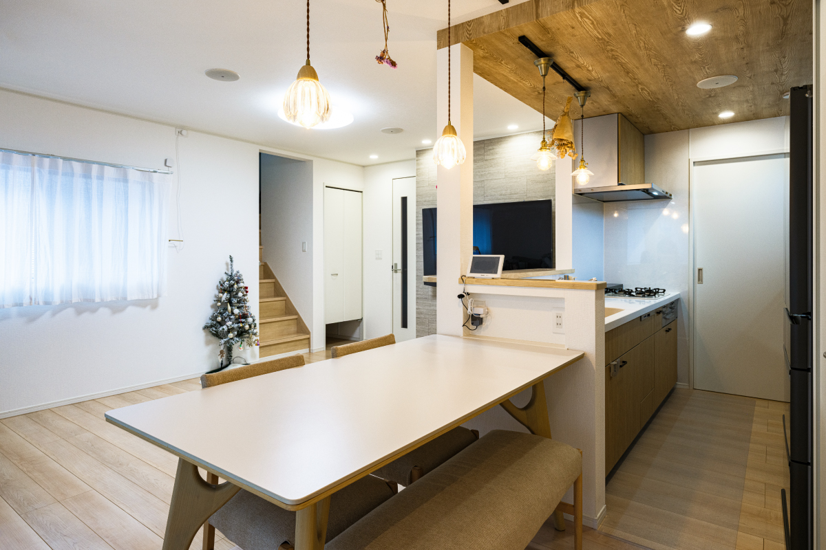 キッチンに並列するダイニング。動線がコンパクトなので配膳や後片付けがしやすく、便利です。