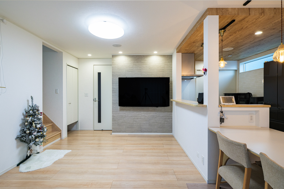 T様は、お子様の誕生をきっかけに住まいの手狭さを感じ、注文住宅の建築を決意されました。不動産会社から紹介されたアーネストワンに依頼した理由は、住宅性能の高さと営業担当者の丁寧な対応が決め手となったからです。