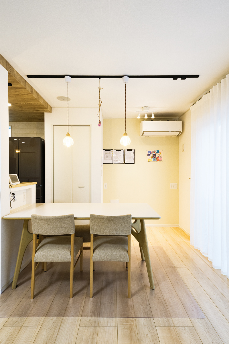 ダイニングの壁面にはマグネットが使用できる仕様を採用しました。お子様の作品を飾ったり、家族の予定が書かれた書類を貼ったりすることで日々の暮らしに役立てています。