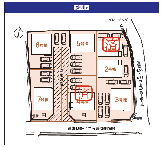 エネルギー消費性能★★★★(削減率30%達成)、断熱性能5段階/7段階中、本現場に関して全ての棟の「エネルギー消費性能」と「断熱性能」は代表棟ラベルと同一です。