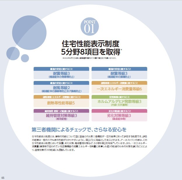 エネルギー消費性能★★★★(削減率30%達成)、断熱性能5段階/7段階中、本現場に関して全ての棟の「エネルギー消費性能」と「断熱性能」は代表棟ラベルと同一です。