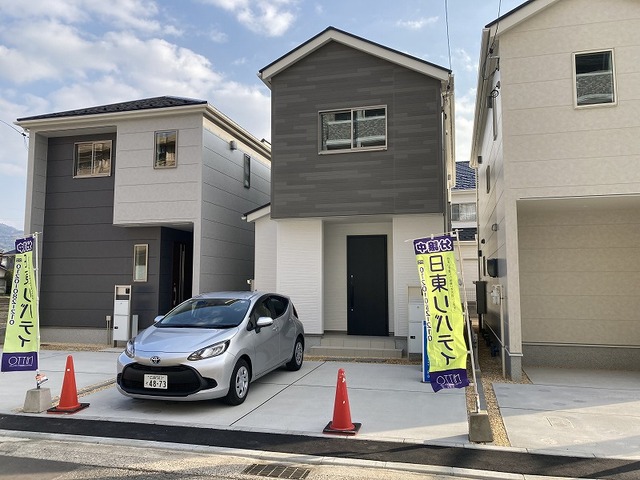 資料請求/現地見学駐車場並列2台可 平坦地に3棟 南向きリビング17帖