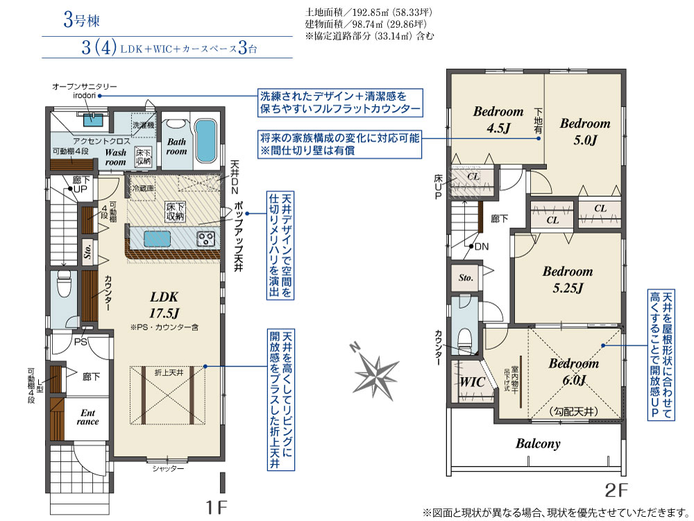 ☆折上天井&勾配天井採用で開放感UP!